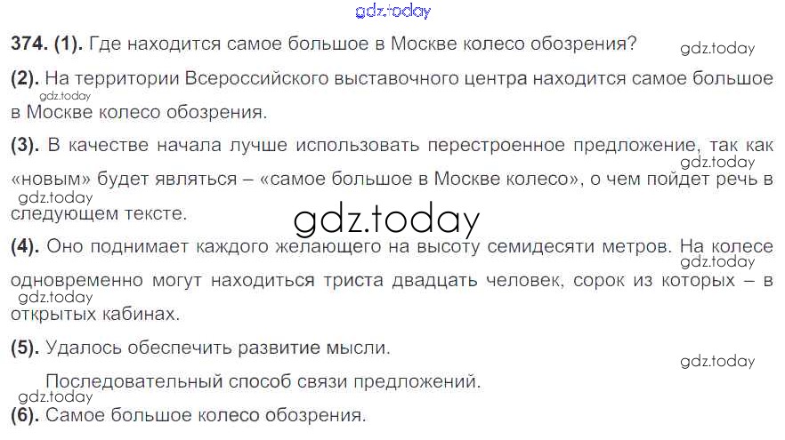 На страницах сайта gdz.today вы найдете учебный и вспомогательный материал, направленный на улучшения знаний школьной программы. ГДЗ - онлайн мир знаний Решение к упражнениям 374 Учебнику по Русскому языку для 7 класса Разумовская, Львова Дрофа, Просвещение УМК 2014, 2022