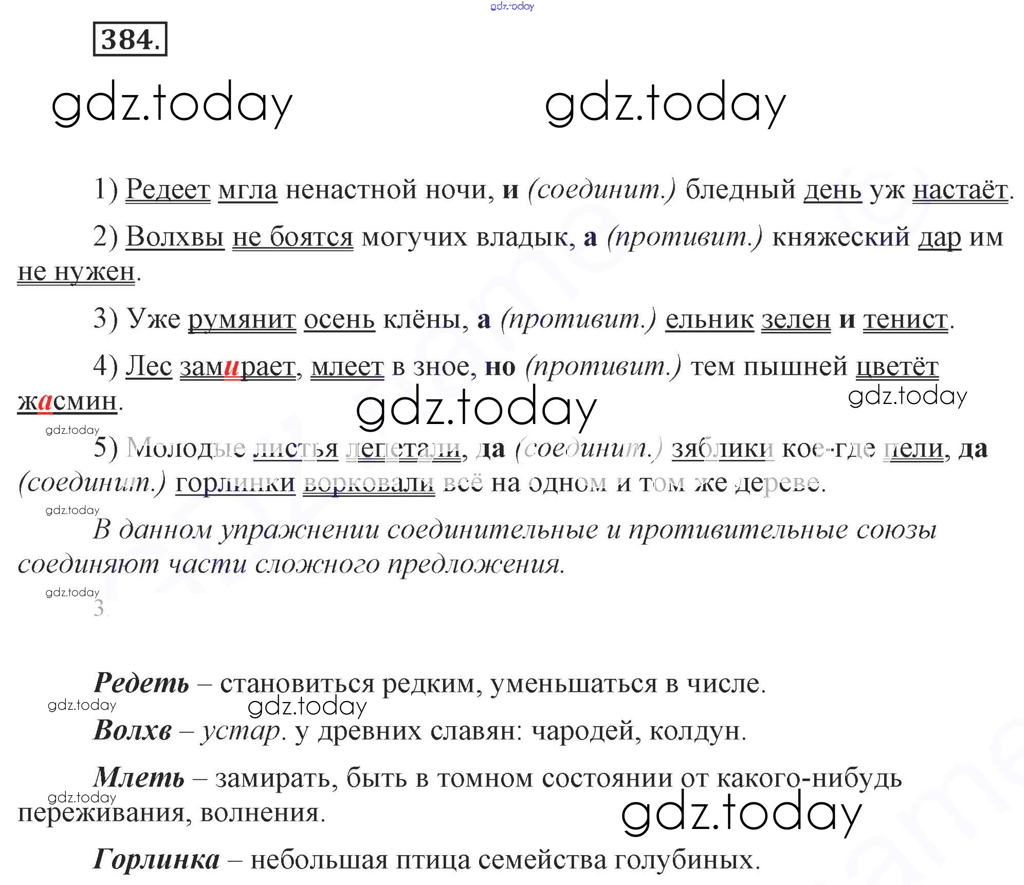 На страницах сайта gdz.today вы найдете учебный и вспомогательный материал, направленный на улучшения знаний школьной программы. ГДЗ - онлайн мир знаний Решение к упражнениям 384 Учебнику по Русскому языку для 7 класса Разумовская, Львова Дрофа, Просвещение УМК 2014, 2022