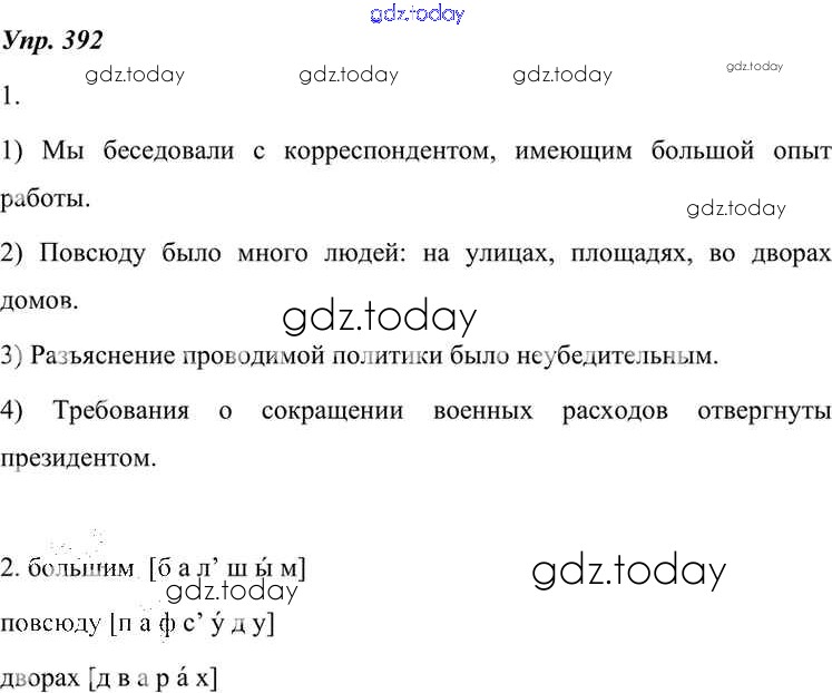 На страницах сайта gdz.today вы найдете учебный и вспомогательный материал, направленный на улучшения знаний школьной программы. ГДЗ - онлайн мир знаний Решение к упражнениям 392 Учебнику по Русскому языку для 7 класса Разумовская, Львова Дрофа, Просвещение УМК 2014, 2022