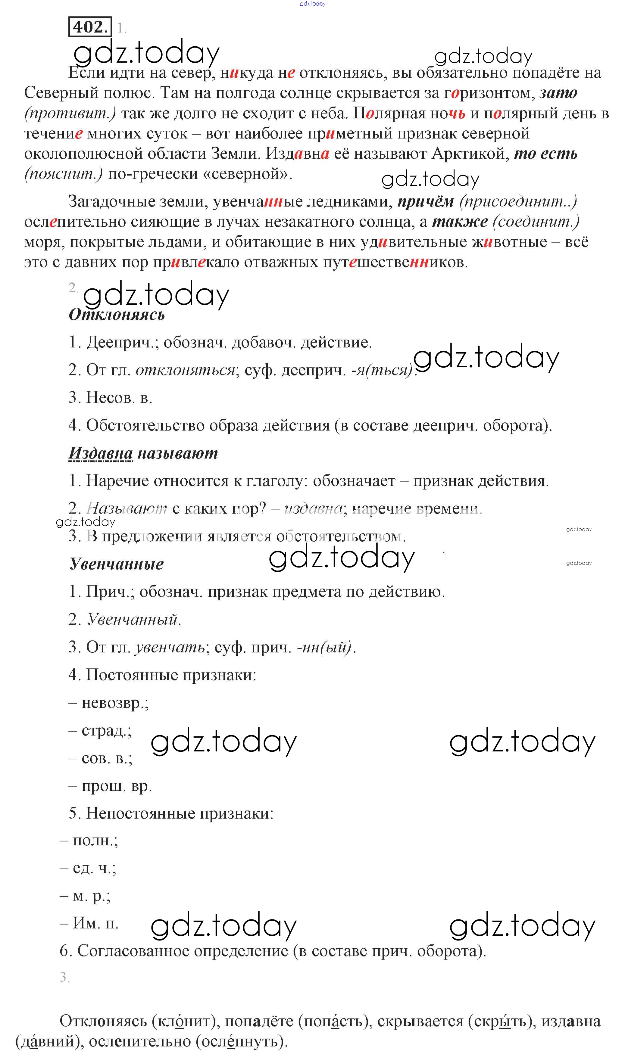 На страницах сайта gdz.today вы найдете учебный и вспомогательный материал, направленный на улучшения знаний школьной программы. ГДЗ - онлайн мир знаний Решение к упражнениям 402 Учебнику по Русскому языку для 7 класса Разумовская, Львова Дрофа, Просвещение УМК 2014, 2022
