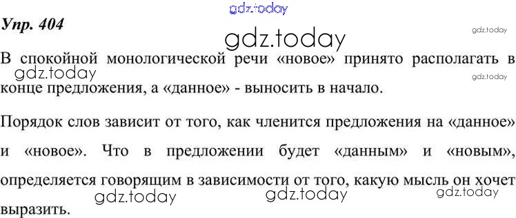 На страницах сайта gdz.today вы найдете учебный и вспомогательный материал, направленный на улучшения знаний школьной программы. ГДЗ - онлайн мир знаний Решение к упражнениям 404 Учебнику по Русскому языку для 7 класса Разумовская, Львова Дрофа, Просвещение УМК 2014, 2022