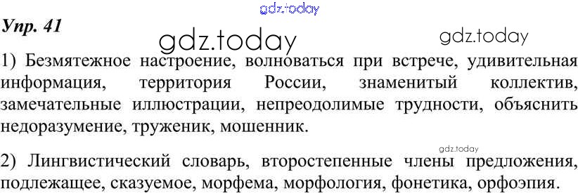 На страницах сайта gdz.today вы найдете учебный и вспомогательный материал, направленный на улучшения знаний школьной программы. ГДЗ - онлайн мир знаний Решение к упражнениям 41 Учебнику по Русскому языку для 7 класса Разумовская, Львова Дрофа, Просвещение УМК 2014, 2022