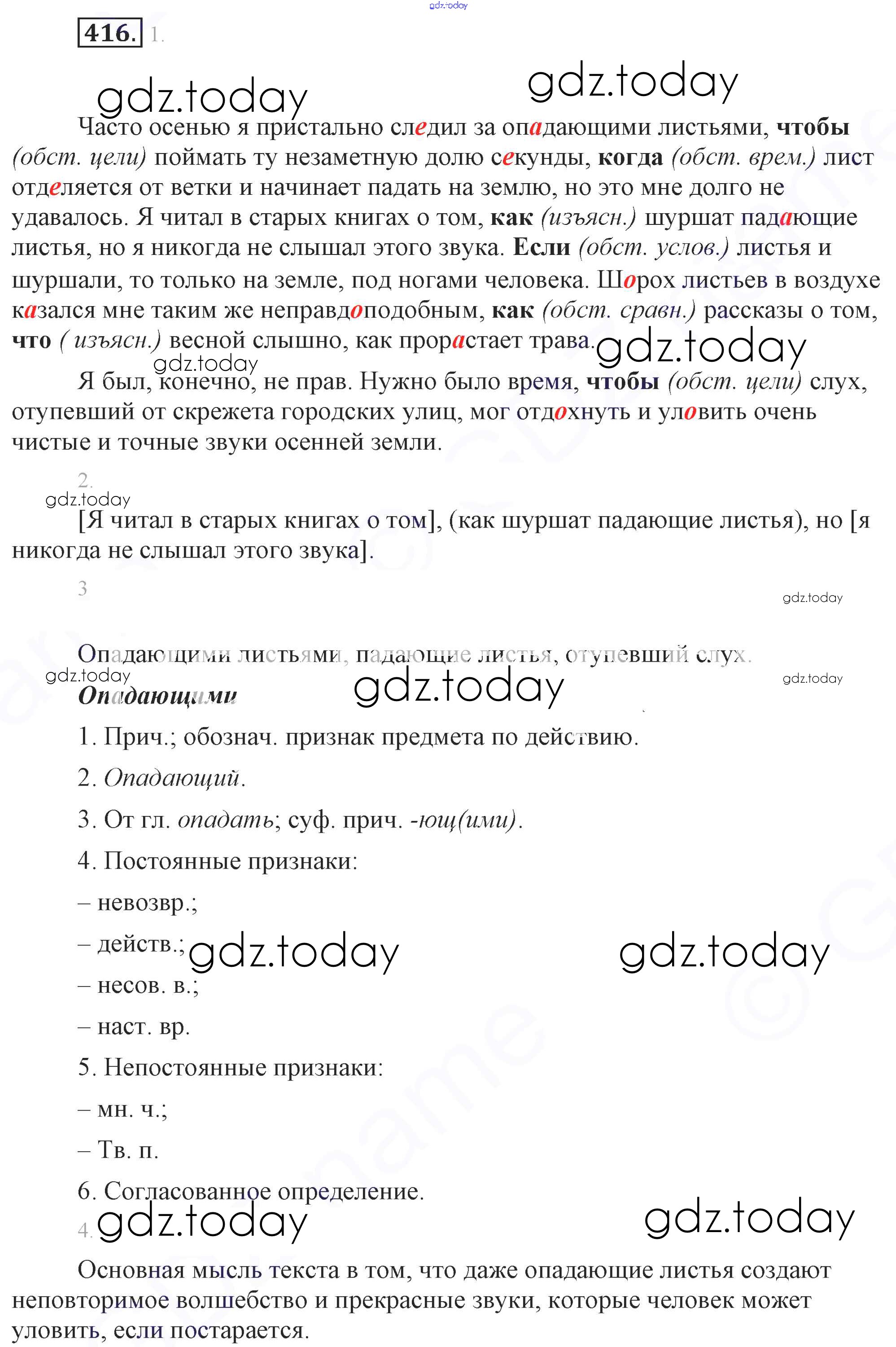 На страницах сайта gdz.today вы найдете учебный и вспомогательный материал, направленный на улучшения знаний школьной программы. ГДЗ - онлайн мир знаний Решение к упражнениям 416 Учебнику по Русскому языку для 7 класса Разумовская, Львова Дрофа, Просвещение УМК 2014, 2022