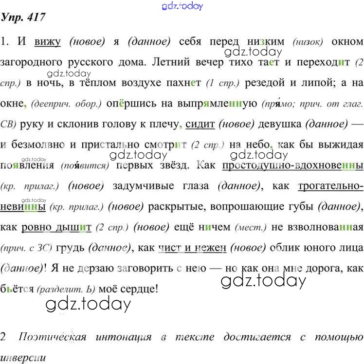 На страницах сайта gdz.today вы найдете учебный и вспомогательный материал, направленный на улучшения знаний школьной программы. ГДЗ - онлайн мир знаний Решение к упражнениям 417 Учебнику по Русскому языку для 7 класса Разумовская, Львова Дрофа, Просвещение УМК 2014, 2022