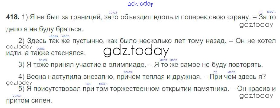 На страницах сайта gdz.today вы найдете учебный и вспомогательный материал, направленный на улучшения знаний школьной программы. ГДЗ - онлайн мир знаний Решение к упражнениям 418 Учебнику по Русскому языку для 7 класса Разумовская, Львова Дрофа, Просвещение УМК 2014, 2022