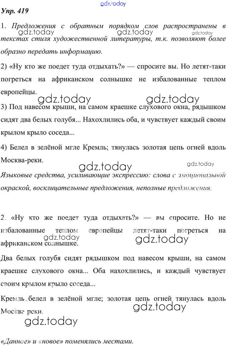 На страницах сайта gdz.today вы найдете учебный и вспомогательный материал, направленный на улучшения знаний школьной программы. ГДЗ - онлайн мир знаний Решение к упражнениям 419 Учебнику по Русскому языку для 7 класса Разумовская, Львова Дрофа, Просвещение УМК 2014, 2022