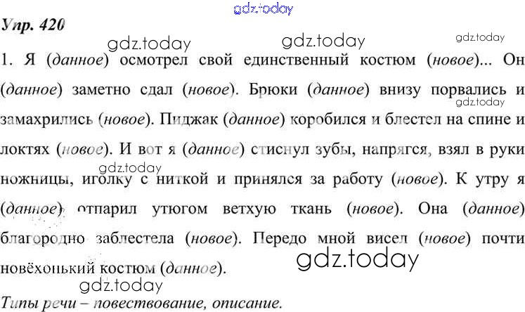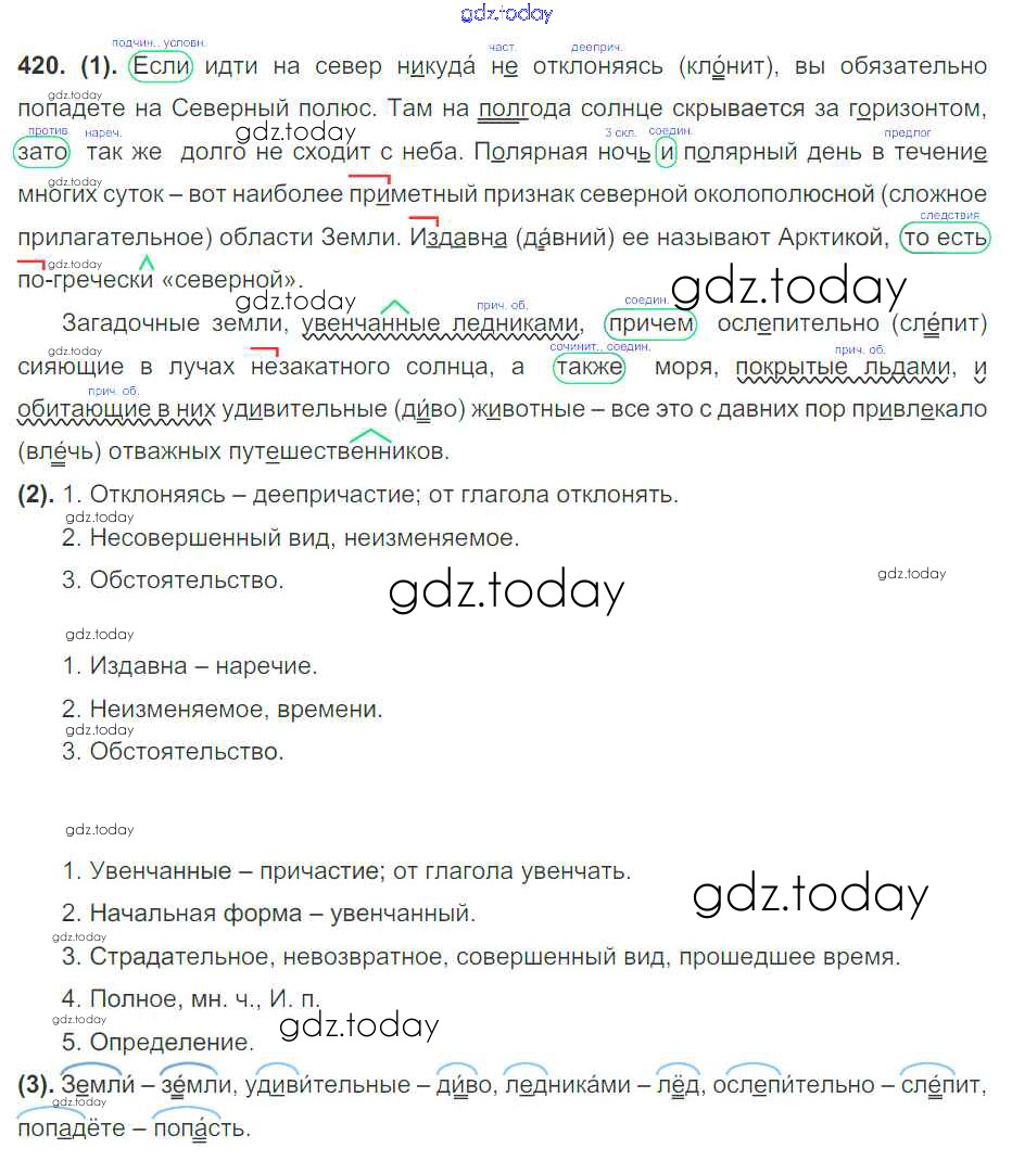 На страницах сайта gdz.today вы найдете учебный и вспомогательный материал, направленный на улучшения знаний школьной программы. ГДЗ - онлайн мир знаний Решение к упражнениям 420 Учебнику по Русскому языку для 7 класса Разумовская, Львова Дрофа, Просвещение УМК 2014, 2022