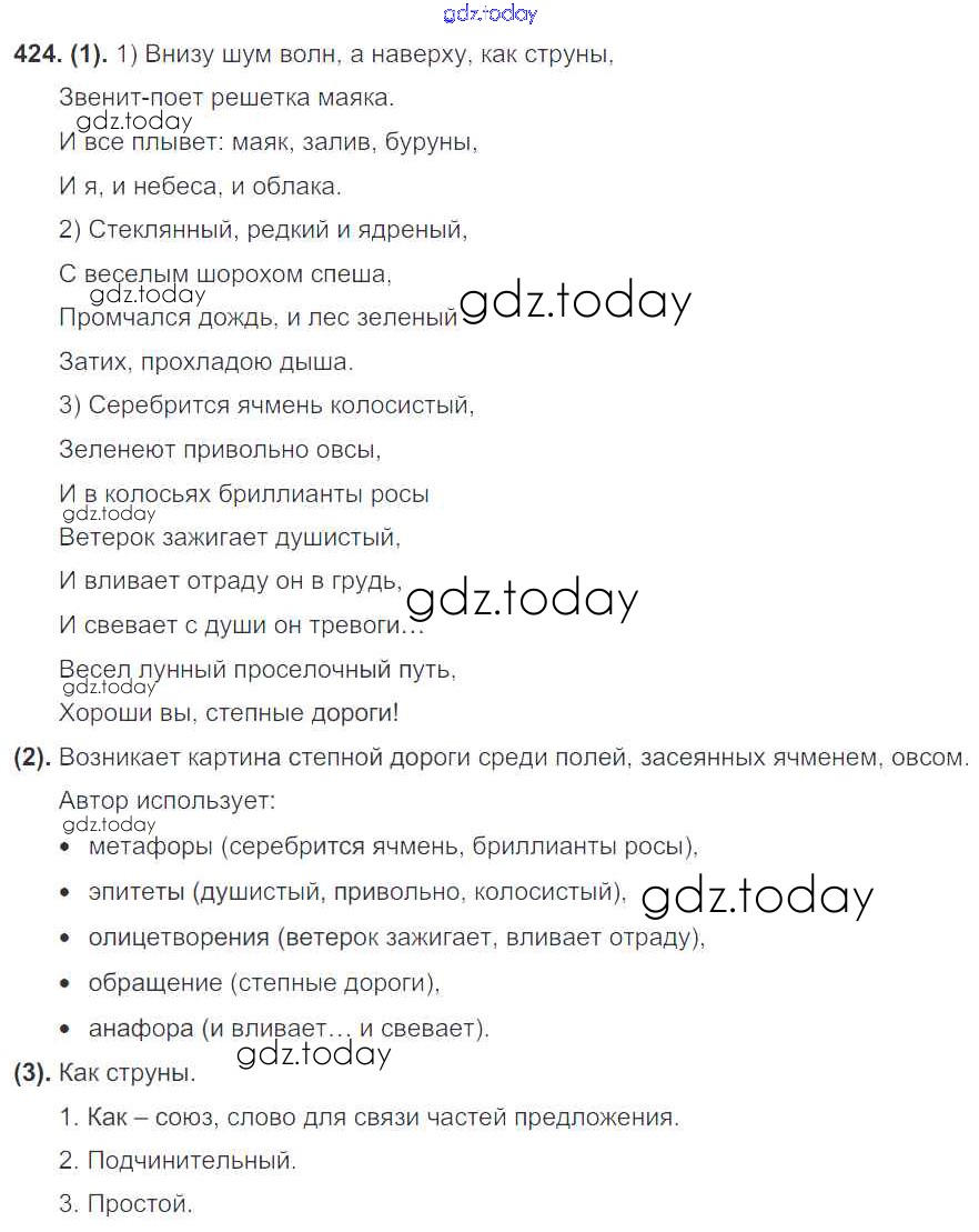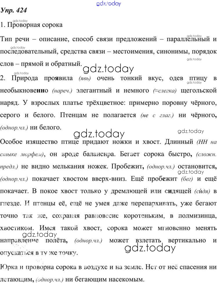 На страницах сайта gdz.today вы найдете учебный и вспомогательный материал, направленный на улучшения знаний школьной программы. ГДЗ - онлайн мир знаний Решение к упражнениям 424 Учебнику по Русскому языку для 7 класса Разумовская, Львова Дрофа, Просвещение УМК 2014, 2022