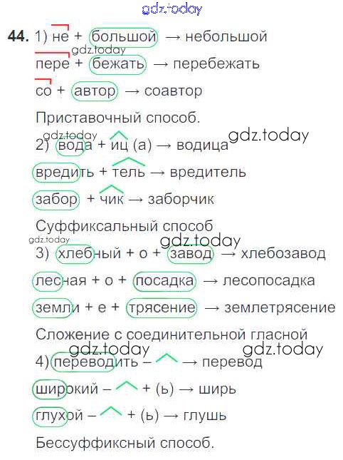 Ответы к Решение к упражнениям 44 Учебнику по Русскому языку для 7 класса Разумовская, Львова Дрофа, Просвещение УМК 2014, 2022