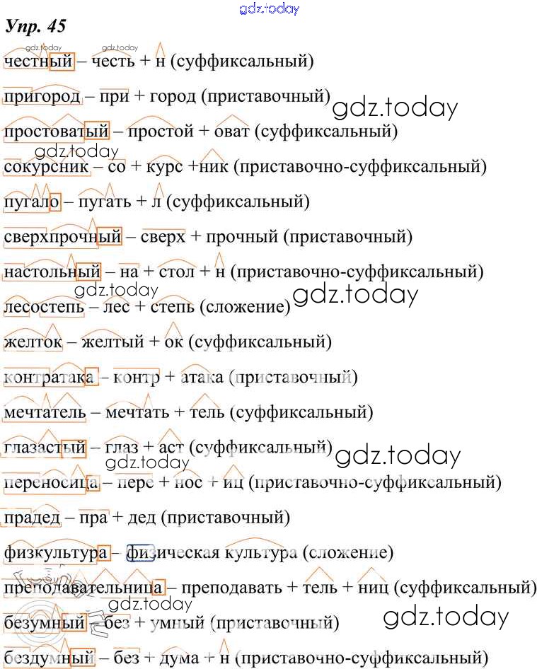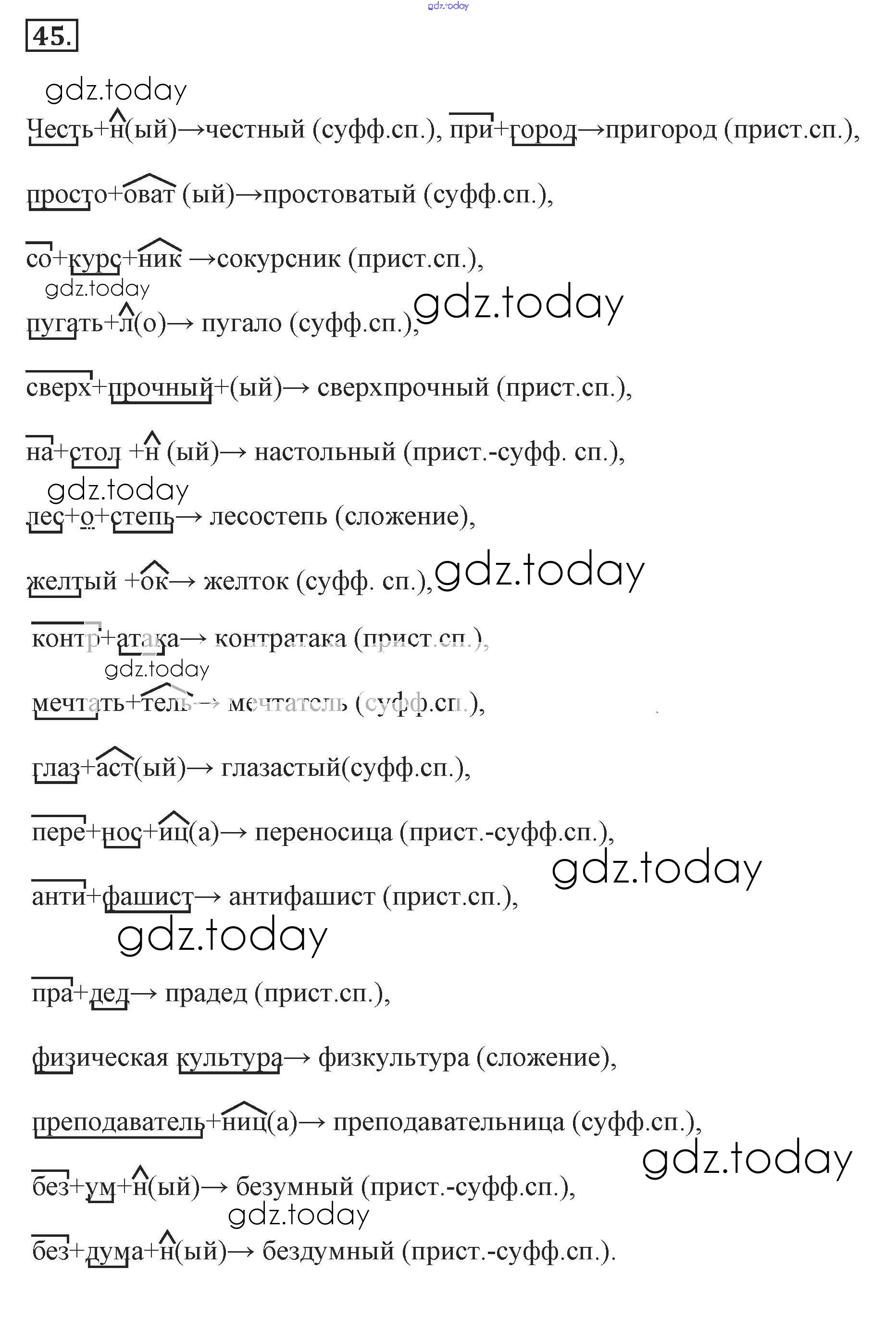 На страницах сайта gdz.today вы найдете учебный и вспомогательный материал, направленный на улучшения знаний школьной программы. ГДЗ - онлайн мир знаний Решение к упражнениям 45 Учебнику по Русскому языку для 7 класса Разумовская, Львова Дрофа, Просвещение УМК 2014, 2022