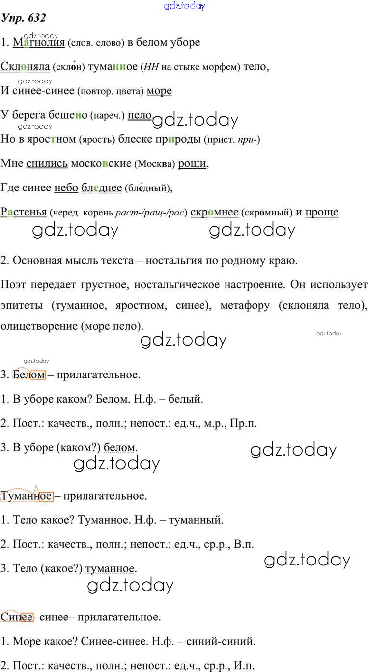 На страницах сайта gdz.today вы найдете учебный и вспомогательный материал, направленный на улучшения знаний школьной программы. ГДЗ - онлайн мир знаний Решение к упражнениям 632 Учебнику по Русскому языку для 7 класса Разумовская, Львова Дрофа, Просвещение УМК 2014, 2022