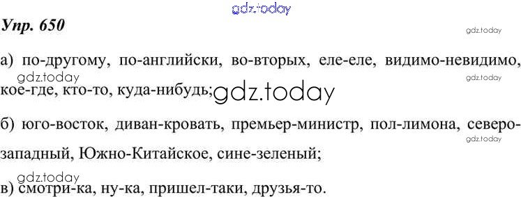 На страницах сайта gdz.today вы найдете учебный и вспомогательный материал, направленный на улучшения знаний школьной программы. ГДЗ - онлайн мир знаний Решение к упражнениям 650 Учебнику по Русскому языку для 7 класса Разумовская, Львова Дрофа, Просвещение УМК 2014, 2022