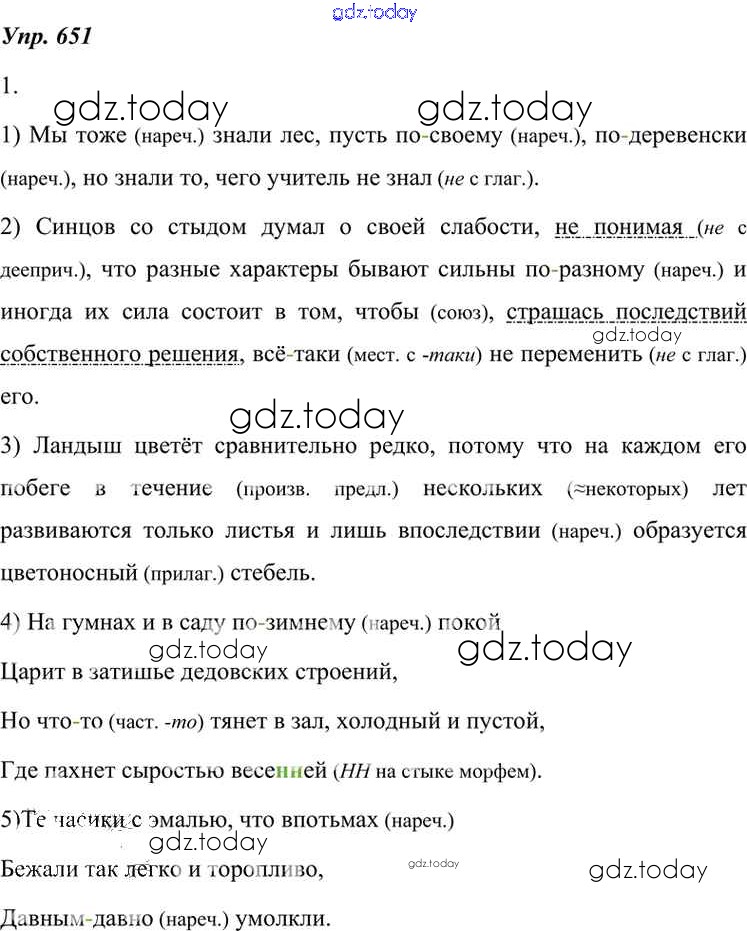 На страницах сайта gdz.today вы найдете учебный и вспомогательный материал, направленный на улучшения знаний школьной программы. ГДЗ - онлайн мир знаний Решение к упражнениям 651 Учебнику по Русскому языку для 7 класса Разумовская, Львова Дрофа, Просвещение УМК 2014, 2022