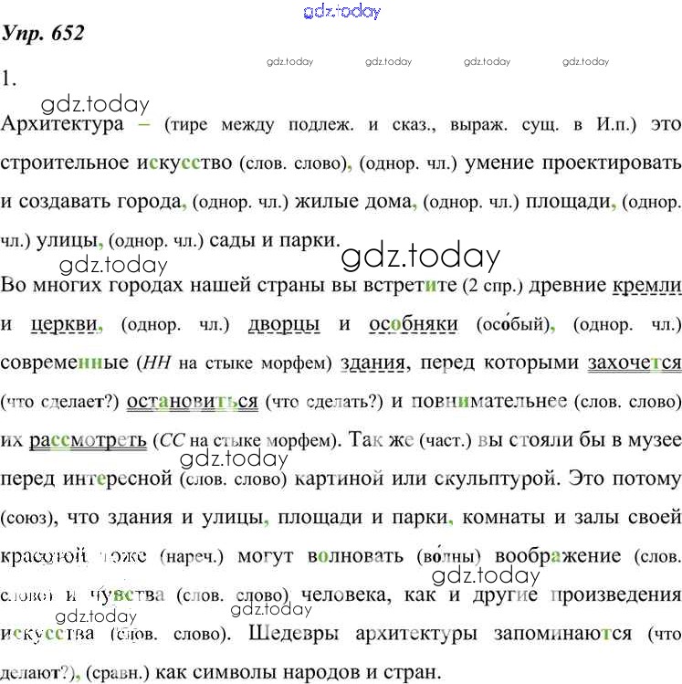 На страницах сайта gdz.today вы найдете учебный и вспомогательный материал, направленный на улучшения знаний школьной программы. ГДЗ - онлайн мир знаний Решение к упражнениям 652 Учебнику по Русскому языку для 7 класса Разумовская, Львова Дрофа, Просвещение УМК 2014, 2022