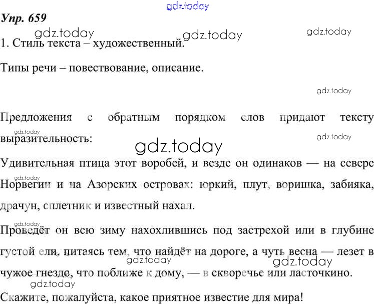 На страницах сайта gdz.today вы найдете учебный и вспомогательный материал, направленный на улучшения знаний школьной программы. ГДЗ - онлайн мир знаний Решение к упражнениям 659 Учебнику по Русскому языку для 7 класса Разумовская, Львова Дрофа, Просвещение УМК 2014, 2022