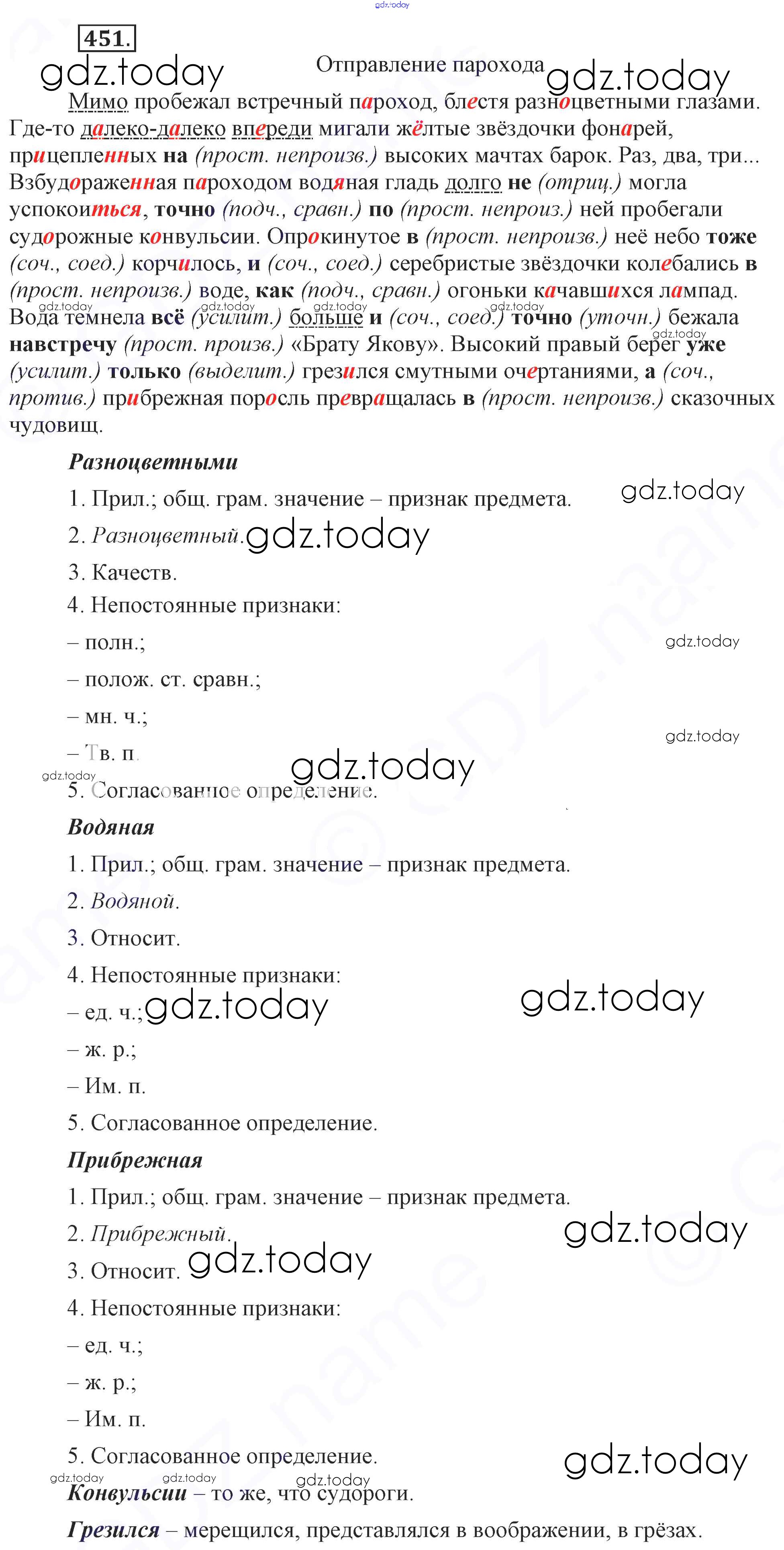 На страницах сайта gdz.today вы найдете учебный и вспомогательный материал, направленный на улучшения знаний школьной программы. ГДЗ - онлайн мир знаний Решение к упражнениям 451 Учебнику по Русскому языку для 7 класса Разумовская, Львова Дрофа, Просвещение УМК 2014, 2022