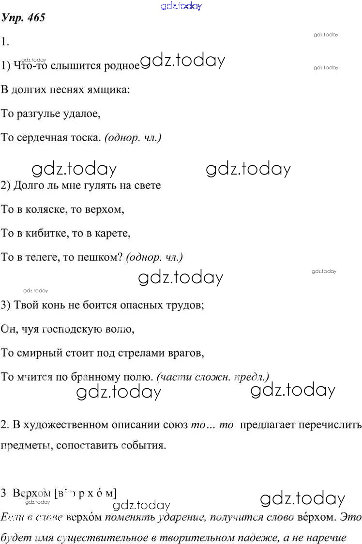 На страницах сайта gdz.today вы найдете учебный и вспомогательный материал, направленный на улучшения знаний школьной программы. ГДЗ - онлайн мир знаний Решение к упражнениям 465 Учебнику по Русскому языку для 7 класса Разумовская, Львова Дрофа, Просвещение УМК 2014, 2022