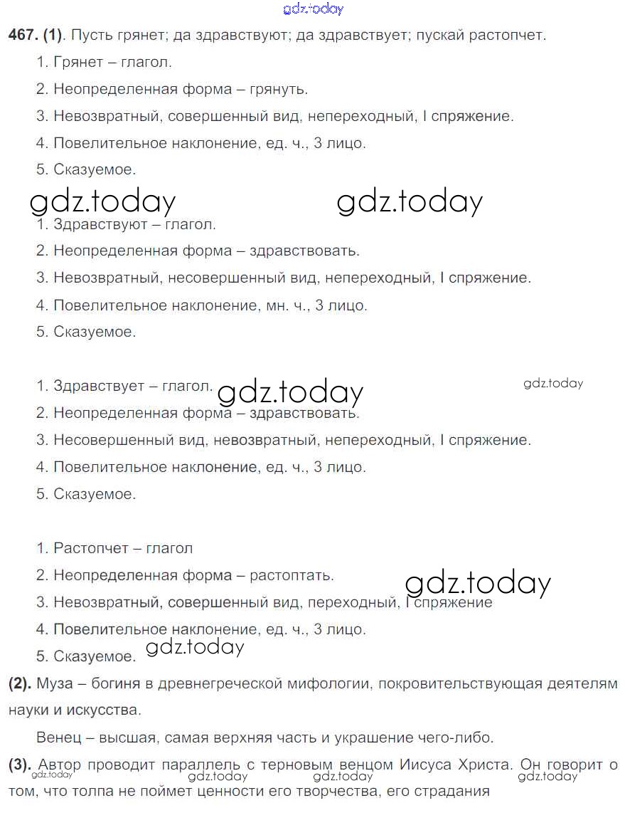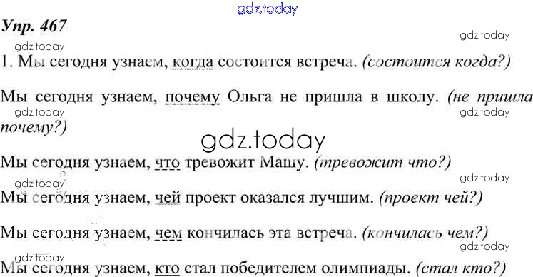 На страницах сайта gdz.today вы найдете учебный и вспомогательный материал, направленный на улучшения знаний школьной программы. ГДЗ - онлайн мир знаний Решение к упражнениям 467 Учебнику по Русскому языку для 7 класса Разумовская, Львова Дрофа, Просвещение УМК 2014, 2022