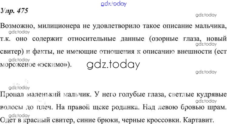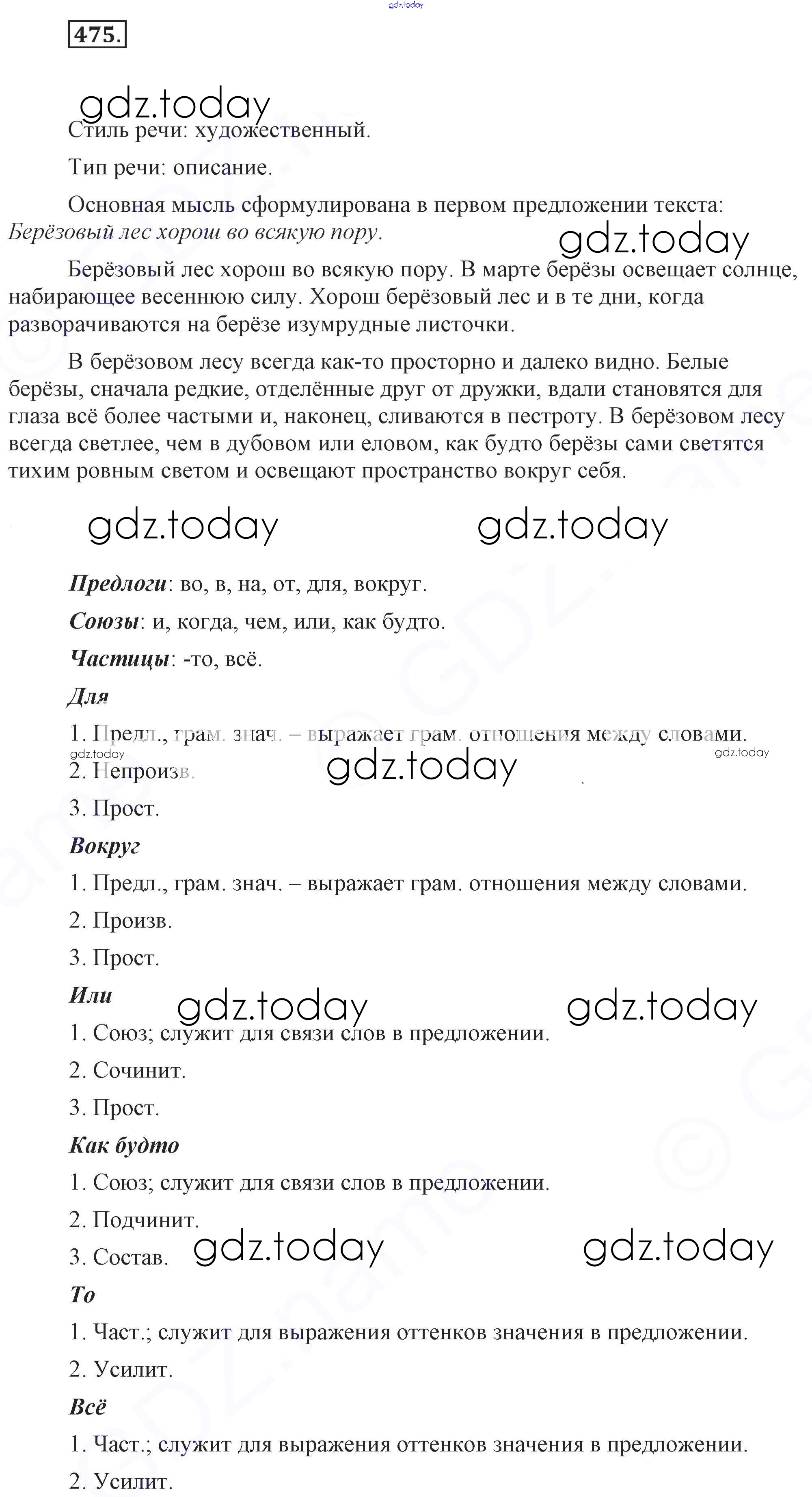 На страницах сайта gdz.today вы найдете учебный и вспомогательный материал, направленный на улучшения знаний школьной программы. ГДЗ - онлайн мир знаний Решение к упражнениям 475 Учебнику по Русскому языку для 7 класса Разумовская, Львова Дрофа, Просвещение УМК 2014, 2022