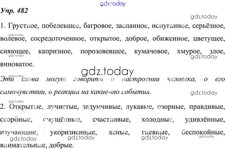 На страницах сайта gdz.today вы найдете учебный и вспомогательный материал, направленный на улучшения знаний школьной программы. ГДЗ - онлайн мир знаний Решение к упражнениям 482 Учебнику по Русскому языку для 7 класса Разумовская, Львова Дрофа, Просвещение УМК 2014, 2022