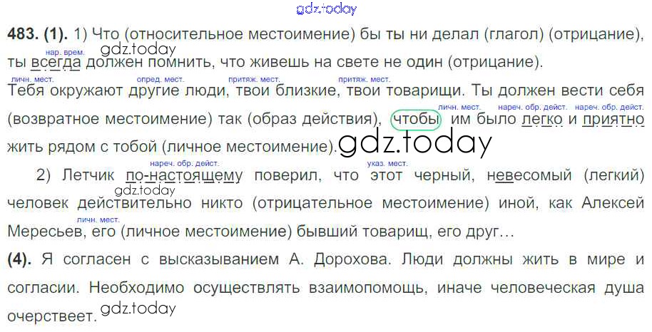 На страницах сайта gdz.today вы найдете учебный и вспомогательный материал, направленный на улучшения знаний школьной программы. ГДЗ - онлайн мир знаний Решение к упражнениям 483 Учебнику по Русскому языку для 7 класса Разумовская, Львова Дрофа, Просвещение УМК 2014, 2022