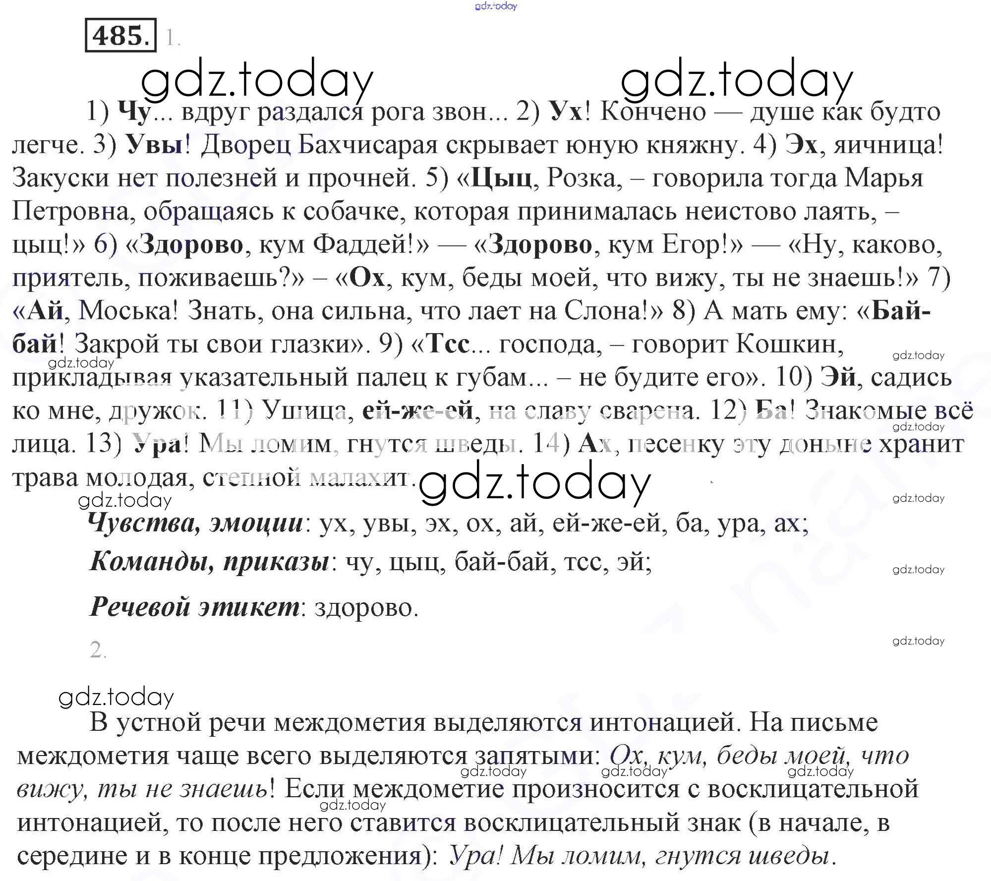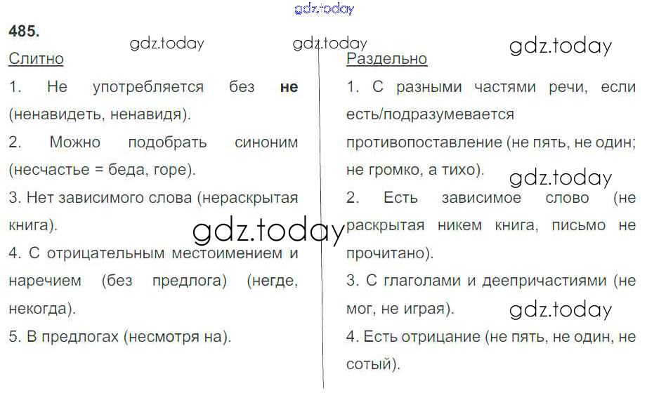 На страницах сайта gdz.today вы найдете учебный и вспомогательный материал, направленный на улучшения знаний школьной программы. ГДЗ - онлайн мир знаний Решение к упражнениям 485 Учебнику по Русскому языку для 7 класса Разумовская, Львова Дрофа, Просвещение УМК 2014, 2022