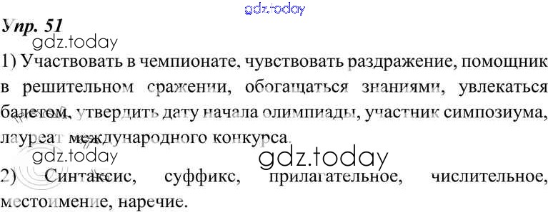 На страницах сайта gdz.today вы найдете учебный и вспомогательный материал, направленный на улучшения знаний школьной программы. ГДЗ - онлайн мир знаний Решение к упражнениям 51 Учебнику по Русскому языку для 7 класса Разумовская, Львова Дрофа, Просвещение УМК 2014, 2022