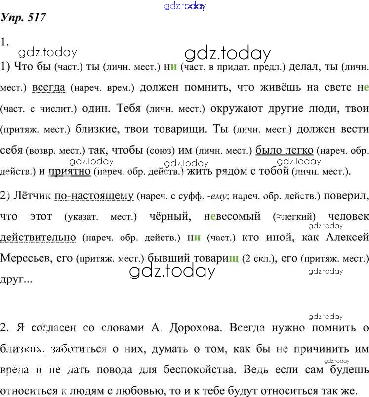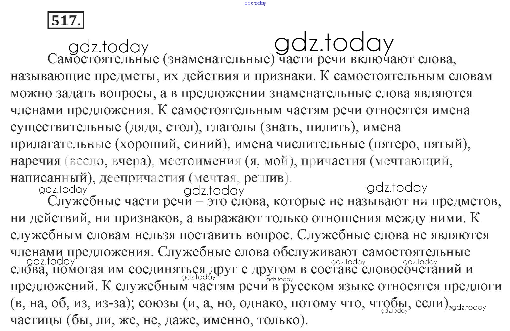 На страницах сайта gdz.today вы найдете учебный и вспомогательный материал, направленный на улучшения знаний школьной программы. ГДЗ - онлайн мир знаний Решение к упражнениям 517 Учебнику по Русскому языку для 7 класса Разумовская, Львова Дрофа, Просвещение УМК 2014, 2022