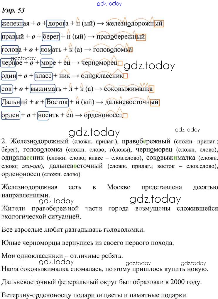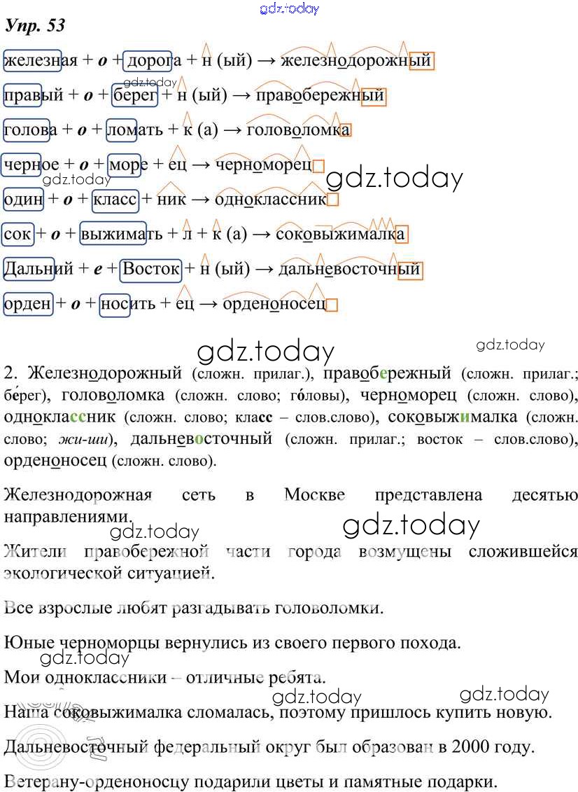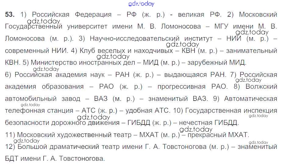 На страницах сайта gdz.today вы найдете учебный и вспомогательный материал, направленный на улучшения знаний школьной программы. ГДЗ - онлайн мир знаний Решение к упражнениям 53 Учебнику по Русскому языку для 7 класса Разумовская, Львова Дрофа, Просвещение УМК 2014, 2022