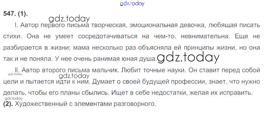 На страницах сайта gdz.today вы найдете учебный и вспомогательный материал, направленный на улучшения знаний школьной программы. ГДЗ - онлайн мир знаний Решение к упражнениям 547 Учебнику по Русскому языку для 7 класса Разумовская, Львова Дрофа, Просвещение УМК 2014, 2022