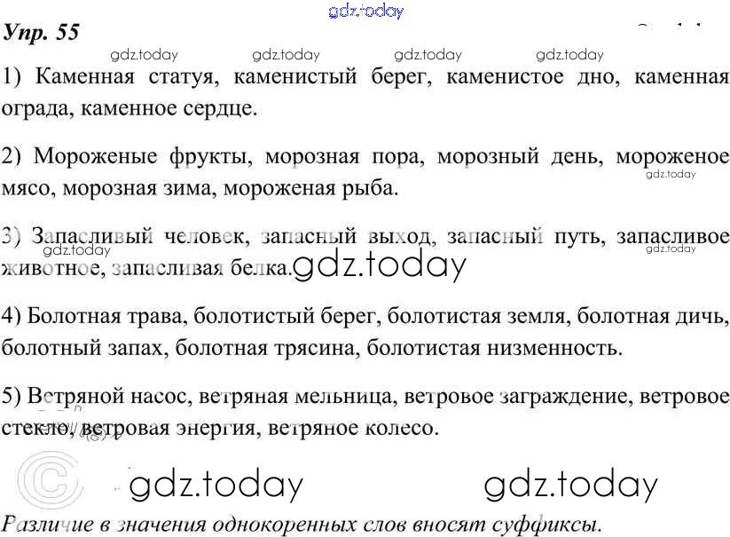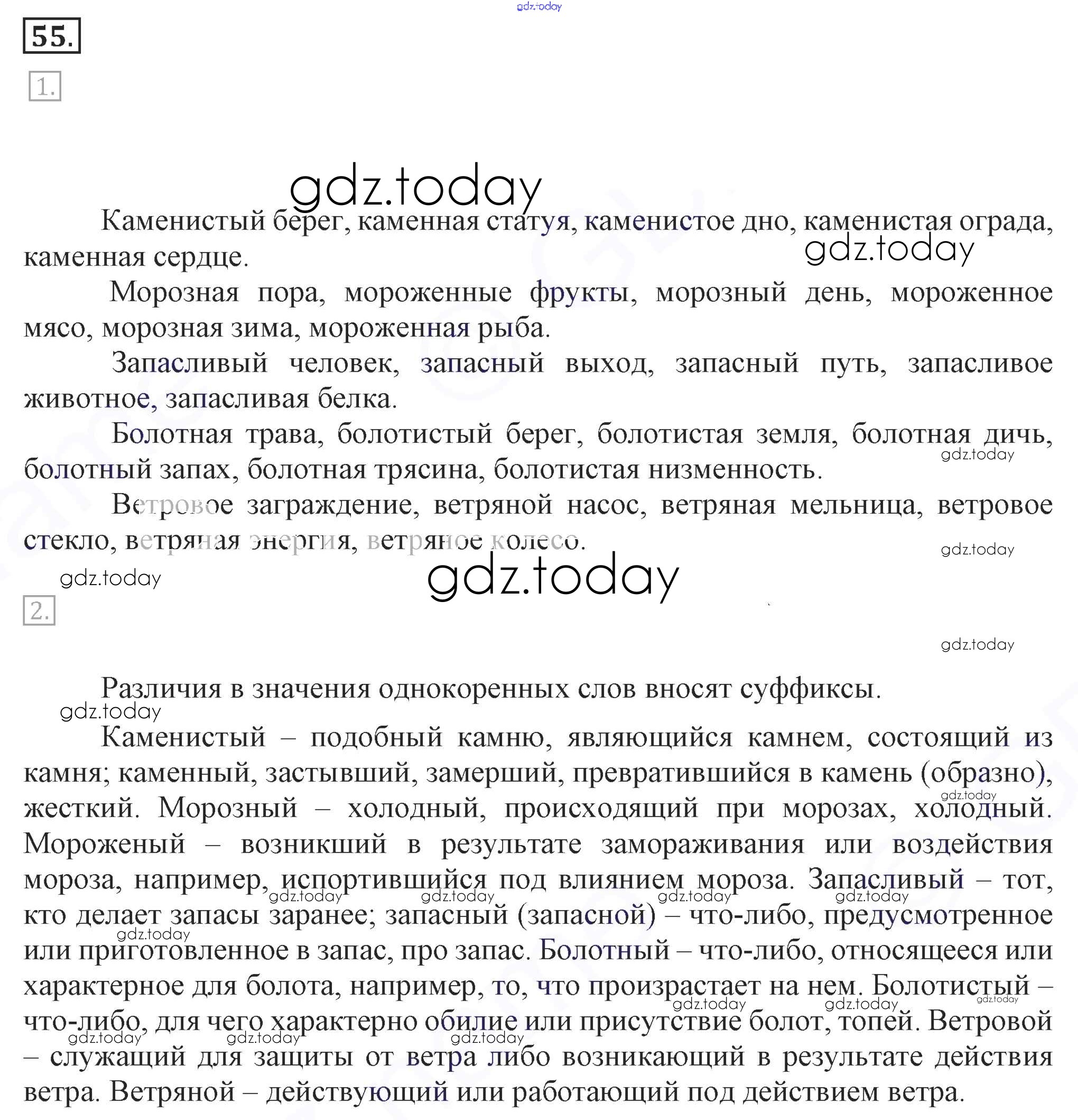 На страницах сайта gdz.today вы найдете учебный и вспомогательный материал, направленный на улучшения знаний школьной программы. ГДЗ - онлайн мир знаний Решение к упражнениям 55 Учебнику по Русскому языку для 7 класса Разумовская, Львова Дрофа, Просвещение УМК 2014, 2022
