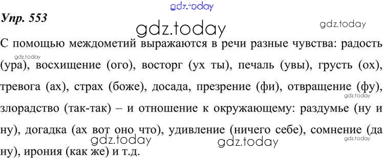 На страницах сайта gdz.today вы найдете учебный и вспомогательный материал, направленный на улучшения знаний школьной программы. ГДЗ - онлайн мир знаний Решение к упражнениям 553 Учебнику по Русскому языку для 7 класса Разумовская, Львова Дрофа, Просвещение УМК 2014, 2022
