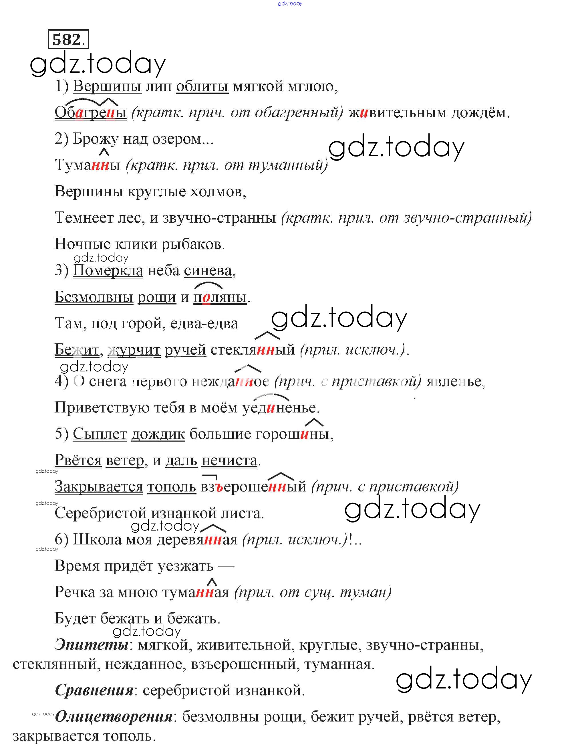 Ответы к Решение к упражнениям 582 Учебнику по Русскому языку для 7 класса Разумовская, Львова Дрофа, Просвещение УМК 2014, 2022