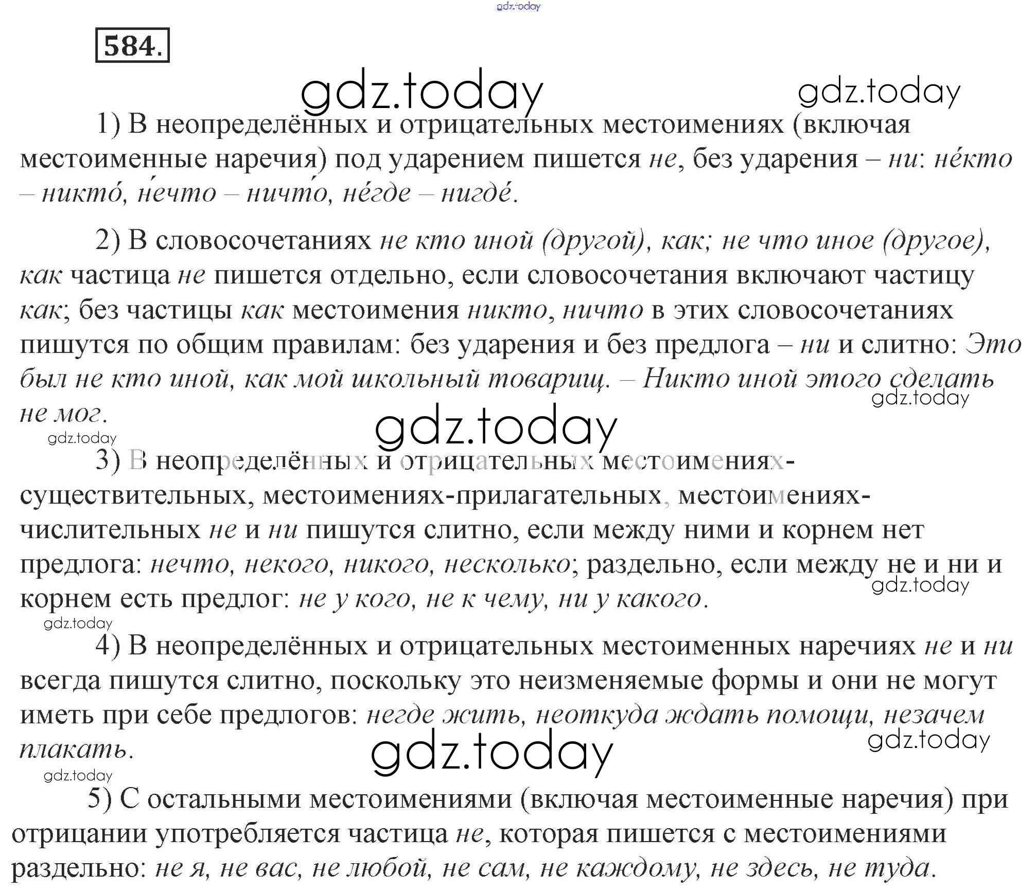 Ответы к Решение к упражнениям 584 Учебнику по Русскому языку для 7 класса Разумовская, Львова Дрофа, Просвещение УМК 2014, 2022