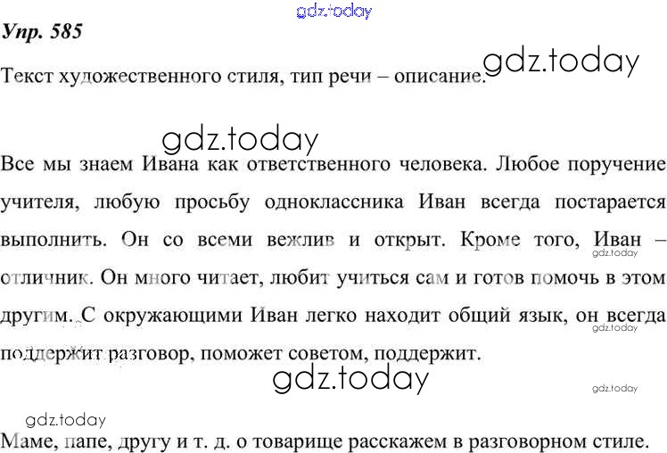 На страницах сайта gdz.today вы найдете учебный и вспомогательный материал, направленный на улучшения знаний школьной программы. ГДЗ - онлайн мир знаний Решение к упражнениям 585 Учебнику по Русскому языку для 7 класса Разумовская, Львова Дрофа, Просвещение УМК 2014, 2022