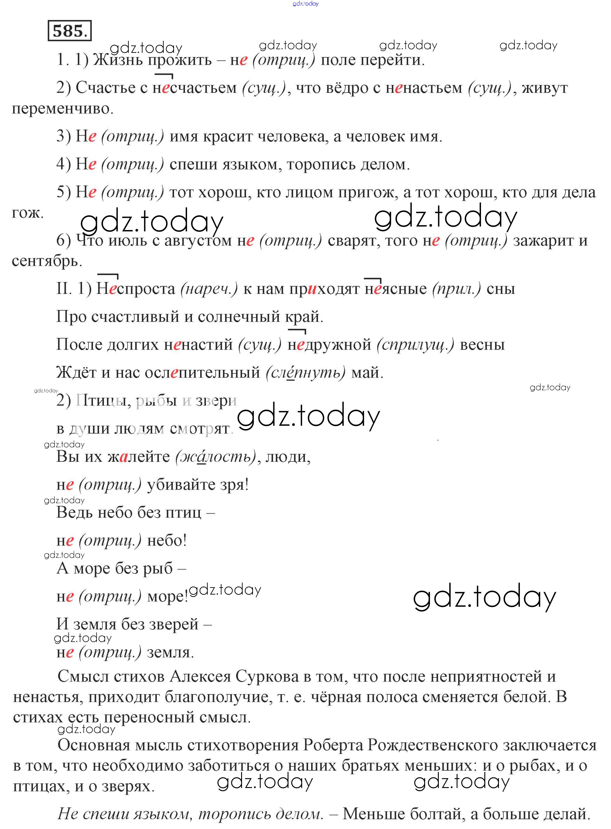 Ответы к Решение к упражнениям 585 Учебнику по Русскому языку для 7 класса Разумовская, Львова Дрофа, Просвещение УМК 2014, 2022