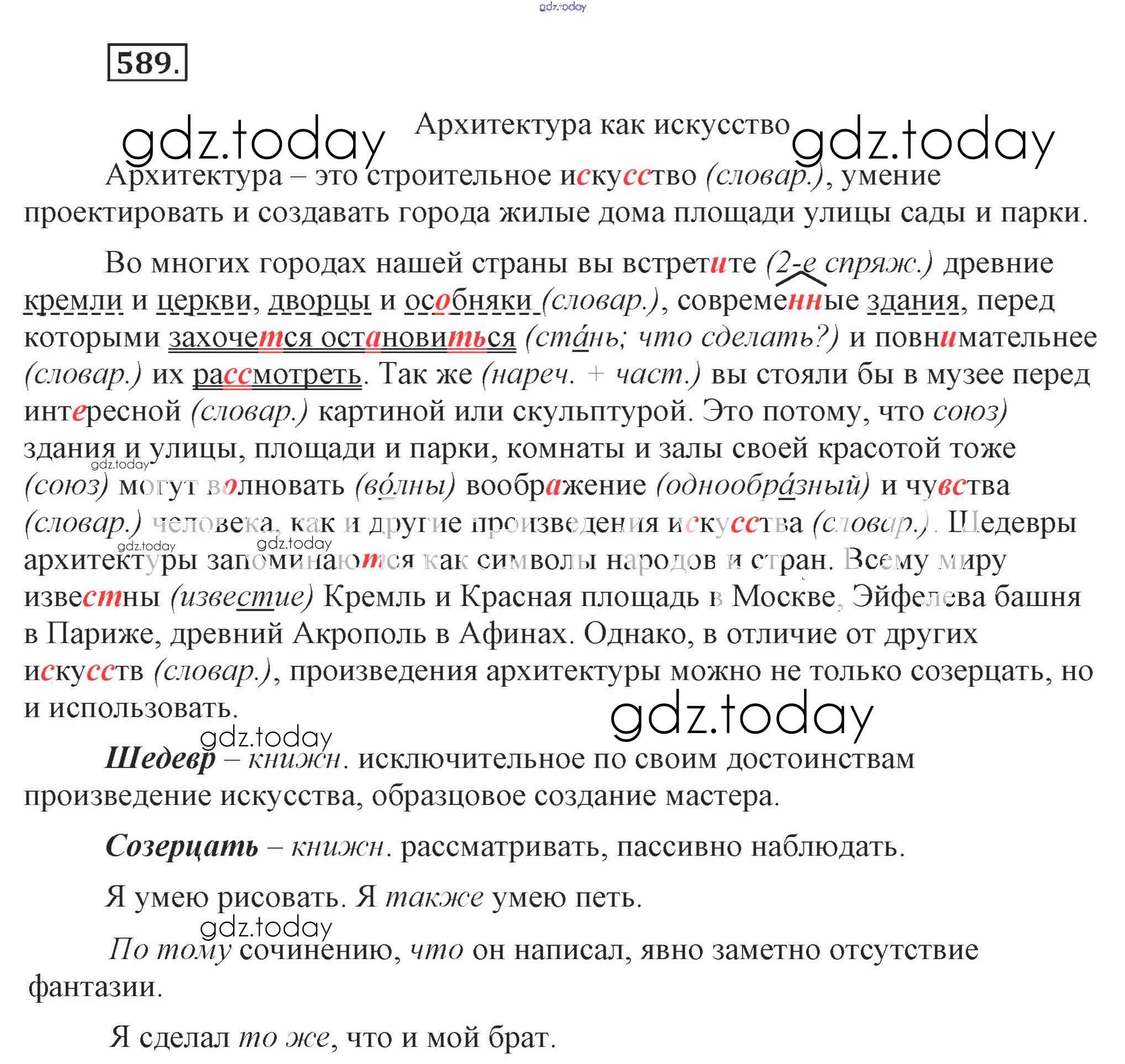 На страницах сайта gdz.today вы найдете учебный и вспомогательный материал, направленный на улучшения знаний школьной программы. ГДЗ - онлайн мир знаний Решение к упражнениям 589 Учебнику по Русскому языку для 7 класса Разумовская, Львова Дрофа, Просвещение УМК 2014, 2022