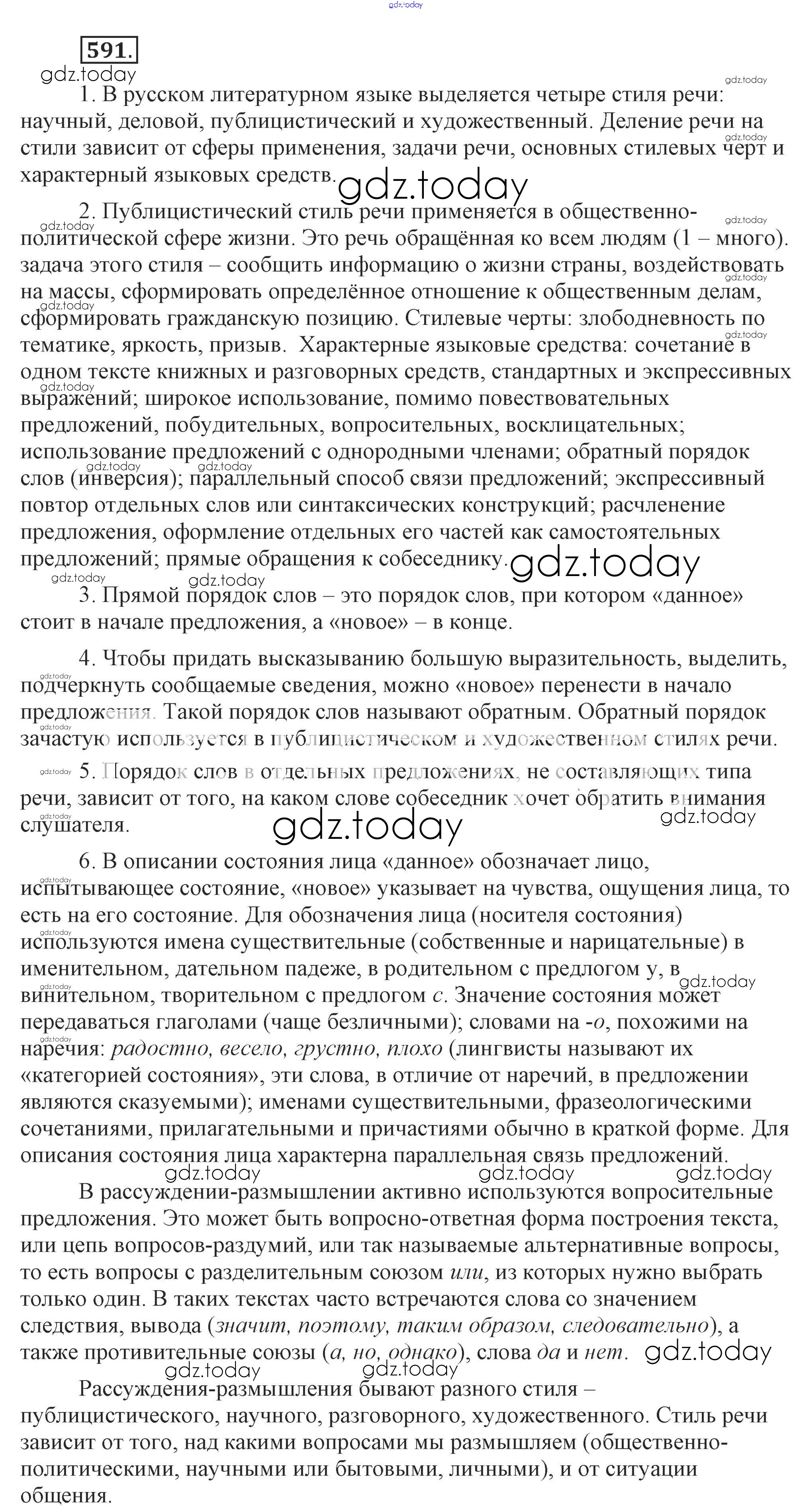 На страницах сайта gdz.today вы найдете учебный и вспомогательный материал, направленный на улучшения знаний школьной программы. ГДЗ - онлайн мир знаний Решение к упражнениям 591 Учебнику по Русскому языку для 7 класса Разумовская, Львова Дрофа, Просвещение УМК 2014, 2022