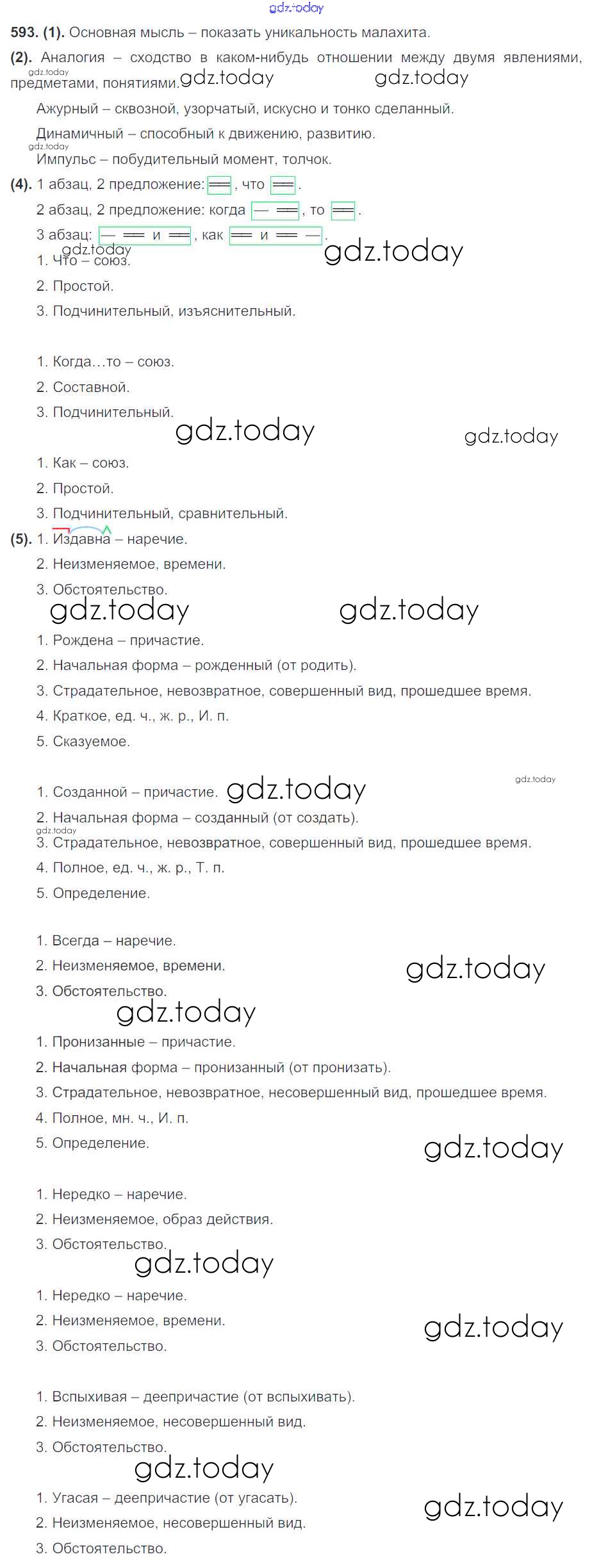 Ответы к Решение к упражнениям 593 Учебнику по Русскому языку для 7 класса Разумовская, Львова Дрофа, Просвещение УМК 2014, 2022