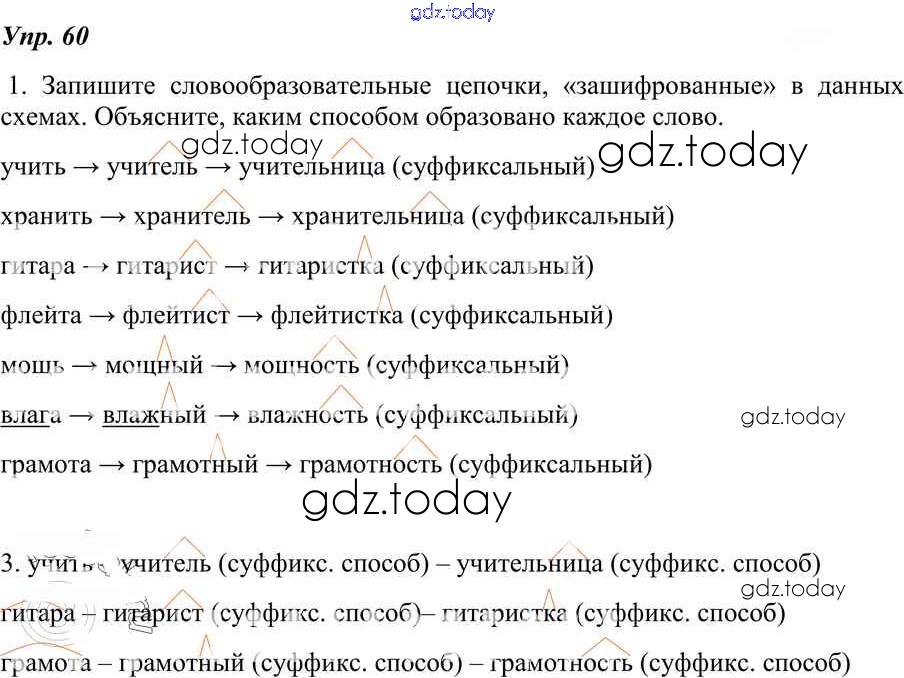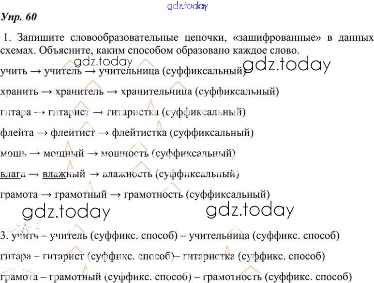 На страницах сайта gdz.today вы найдете учебный и вспомогательный материал, направленный на улучшения знаний школьной программы. ГДЗ - онлайн мир знаний Решение к упражнениям 60 Учебнику по Русскому языку для 7 класса Разумовская, Львова Дрофа, Просвещение УМК 2014, 2022