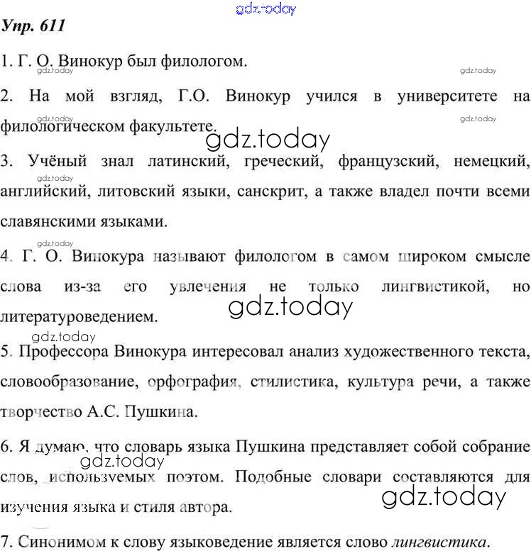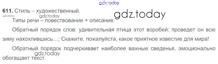 На страницах сайта gdz.today вы найдете учебный и вспомогательный материал, направленный на улучшения знаний школьной программы. ГДЗ - онлайн мир знаний Решение к упражнениям 611 Учебнику по Русскому языку для 7 класса Разумовская, Львова Дрофа, Просвещение УМК 2014, 2022