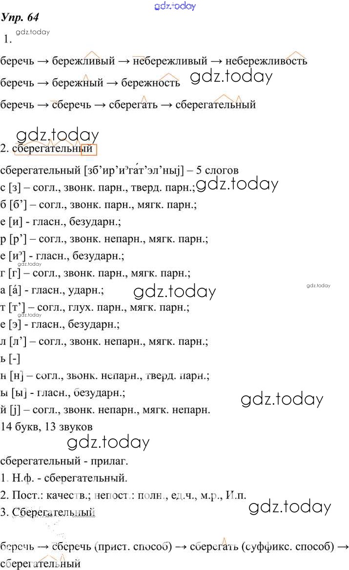 Ответы к Решение к упражнениям 64 Учебнику по Русскому языку для 7 класса Разумовская, Львова Дрофа, Просвещение УМК 2014, 2022