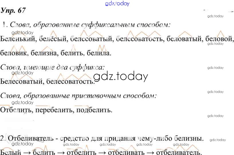 На страницах сайта gdz.today вы найдете учебный и вспомогательный материал, направленный на улучшения знаний школьной программы. ГДЗ - онлайн мир знаний Решение к упражнениям 67 Учебнику по Русскому языку для 7 класса Разумовская, Львова Дрофа, Просвещение УМК 2014, 2022