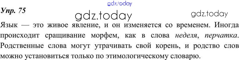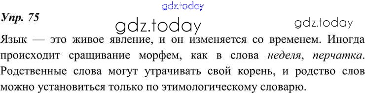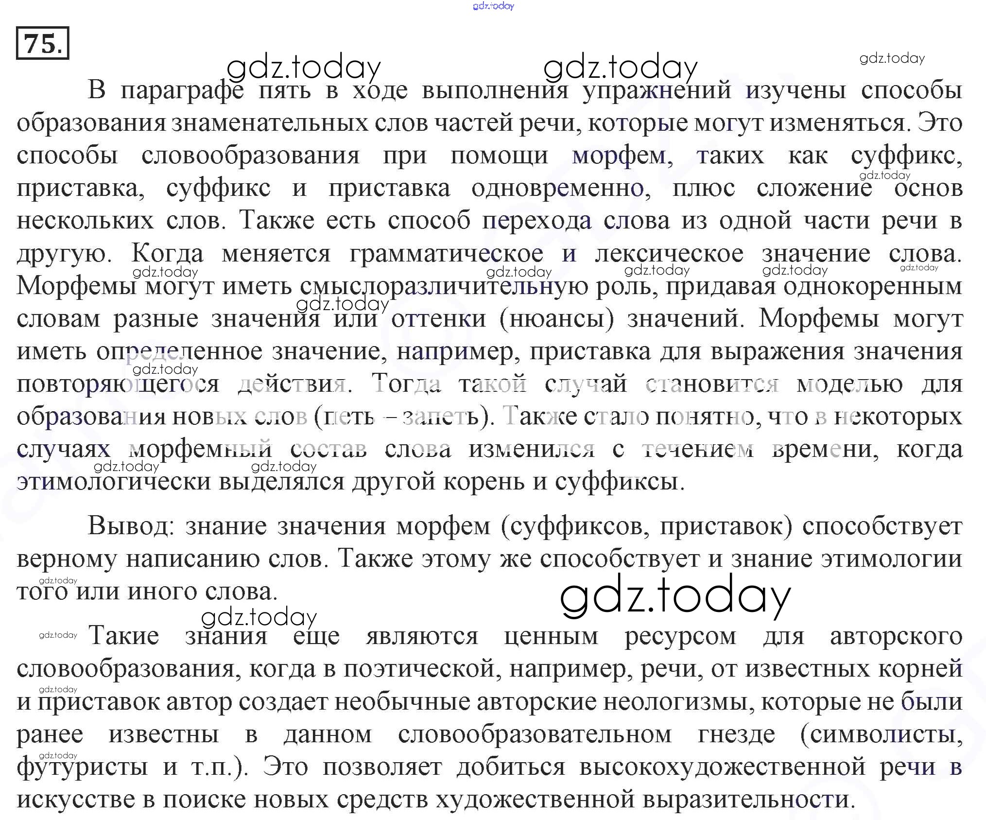 На страницах сайта gdz.today вы найдете учебный и вспомогательный материал, направленный на улучшения знаний школьной программы. ГДЗ - онлайн мир знаний Решение к упражнениям 75 Учебнику по Русскому языку для 7 класса Разумовская, Львова Дрофа, Просвещение УМК 2014, 2022