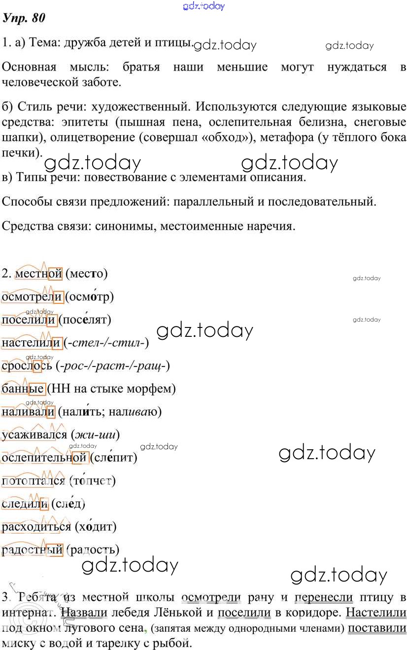 Ответы к Решение к упражнениям 80 Учебнику по Русскому языку для 7 класса Разумовская, Львова Дрофа, Просвещение УМК 2014, 2022