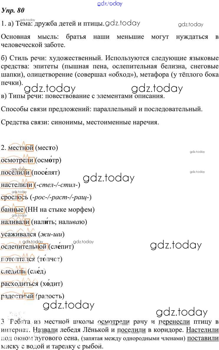 На страницах сайта gdz.today вы найдете учебный и вспомогательный материал, направленный на улучшения знаний школьной программы. ГДЗ - онлайн мир знаний Решение к упражнениям 80 Учебнику по Русскому языку для 7 класса Разумовская, Львова Дрофа, Просвещение УМК 2014, 2022