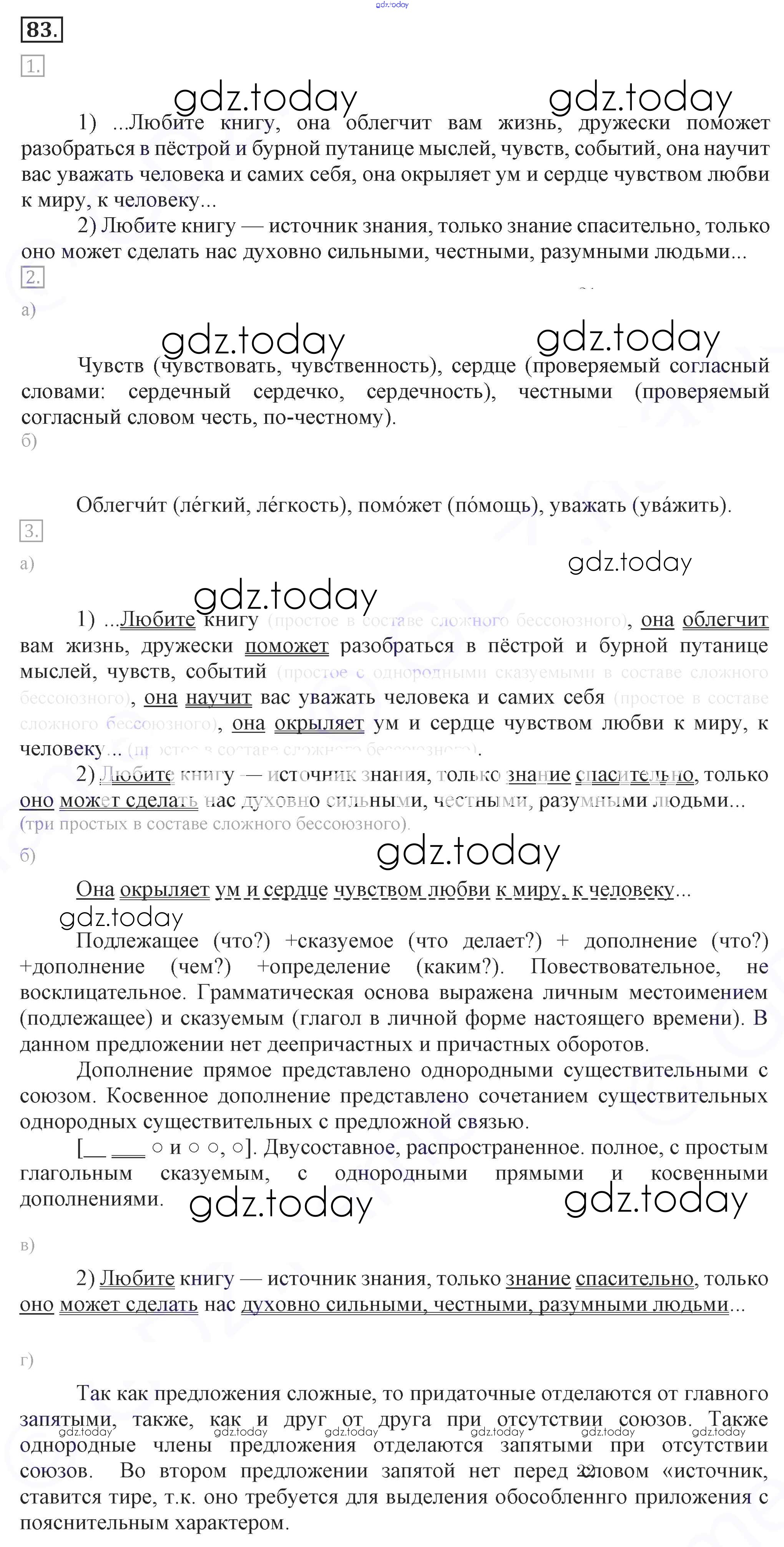 На страницах сайта gdz.today вы найдете учебный и вспомогательный материал, направленный на улучшения знаний школьной программы. ГДЗ - онлайн мир знаний Решение к упражнениям 83 Учебнику по Русскому языку для 7 класса Разумовская, Львова Дрофа, Просвещение УМК 2014, 2022