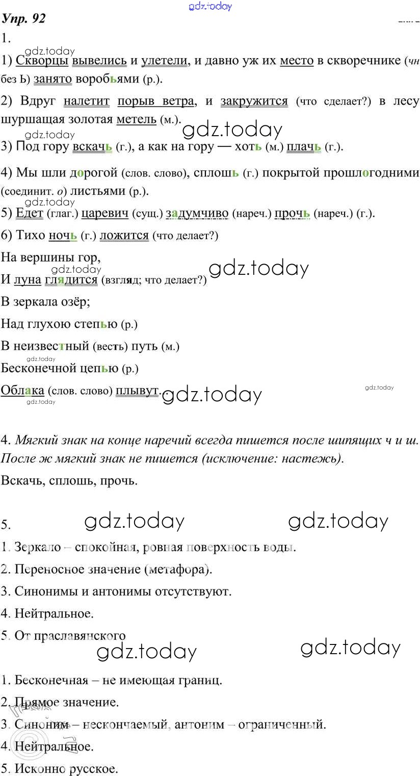 На страницах сайта gdz.today вы найдете учебный и вспомогательный материал, направленный на улучшения знаний школьной программы. ГДЗ - онлайн мир знаний Решение к упражнениям 92 Учебнику по Русскому языку для 7 класса Разумовская, Львова Дрофа, Просвещение УМК 2014, 2022