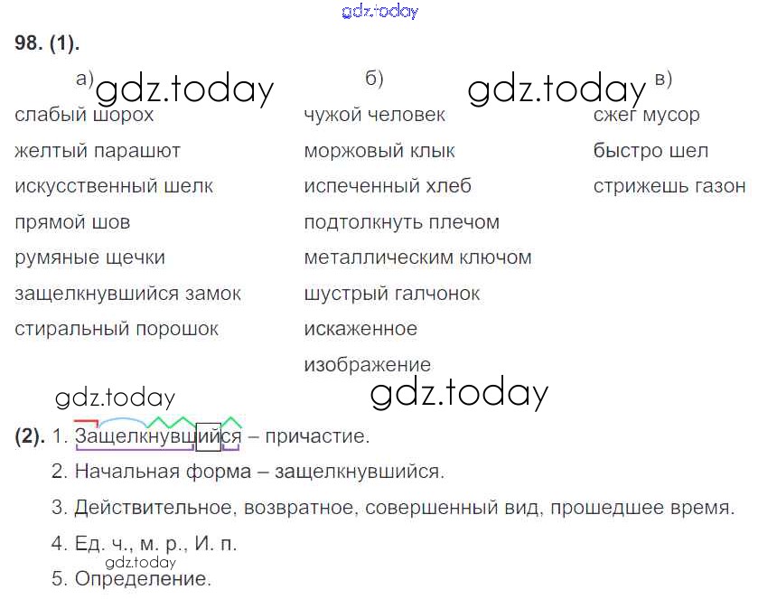 На страницах сайта gdz.today вы найдете учебный и вспомогательный материал, направленный на улучшения знаний школьной программы. ГДЗ - онлайн мир знаний Решение к упражнениям 98 Учебнику по Русскому языку для 7 класса Разумовская, Львова Дрофа, Просвещение УМК 2014, 2022