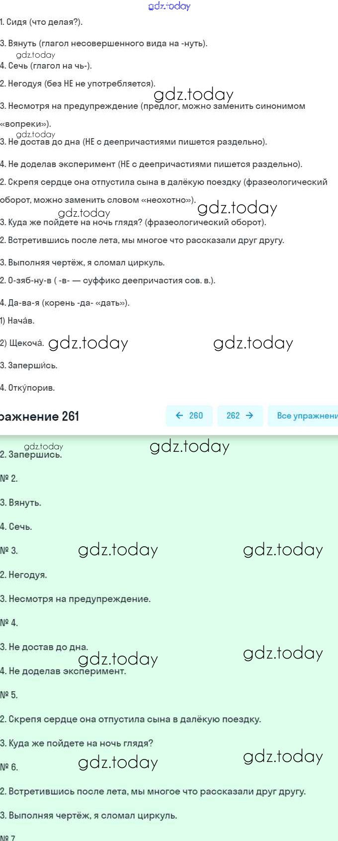 На страницах сайта gdz.today вы найдете учебный и вспомогательный материал, направленный на улучшения знаний школьной программы. ГДЗ - онлайн мир знаний Решение. Упражнения 261 Учебнику по Русскому языку для 7 класса Рыбченкова, Александрова Просвещение, Просвещение 2016, 2019